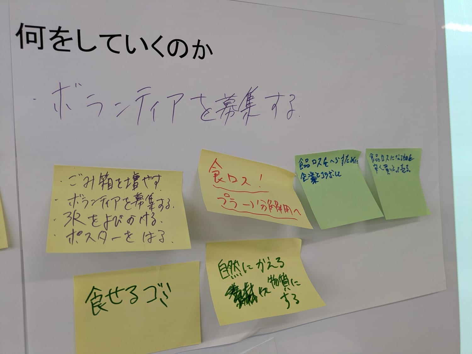 ボランティアサークルを立ち上げて運営している経験を持つ高校1年の生徒がファシリテーターとなって進行、高校生や社会人も交えたグループディスカッションを通じてボランティアを軸とする事業アイデアなどを出し合いました。