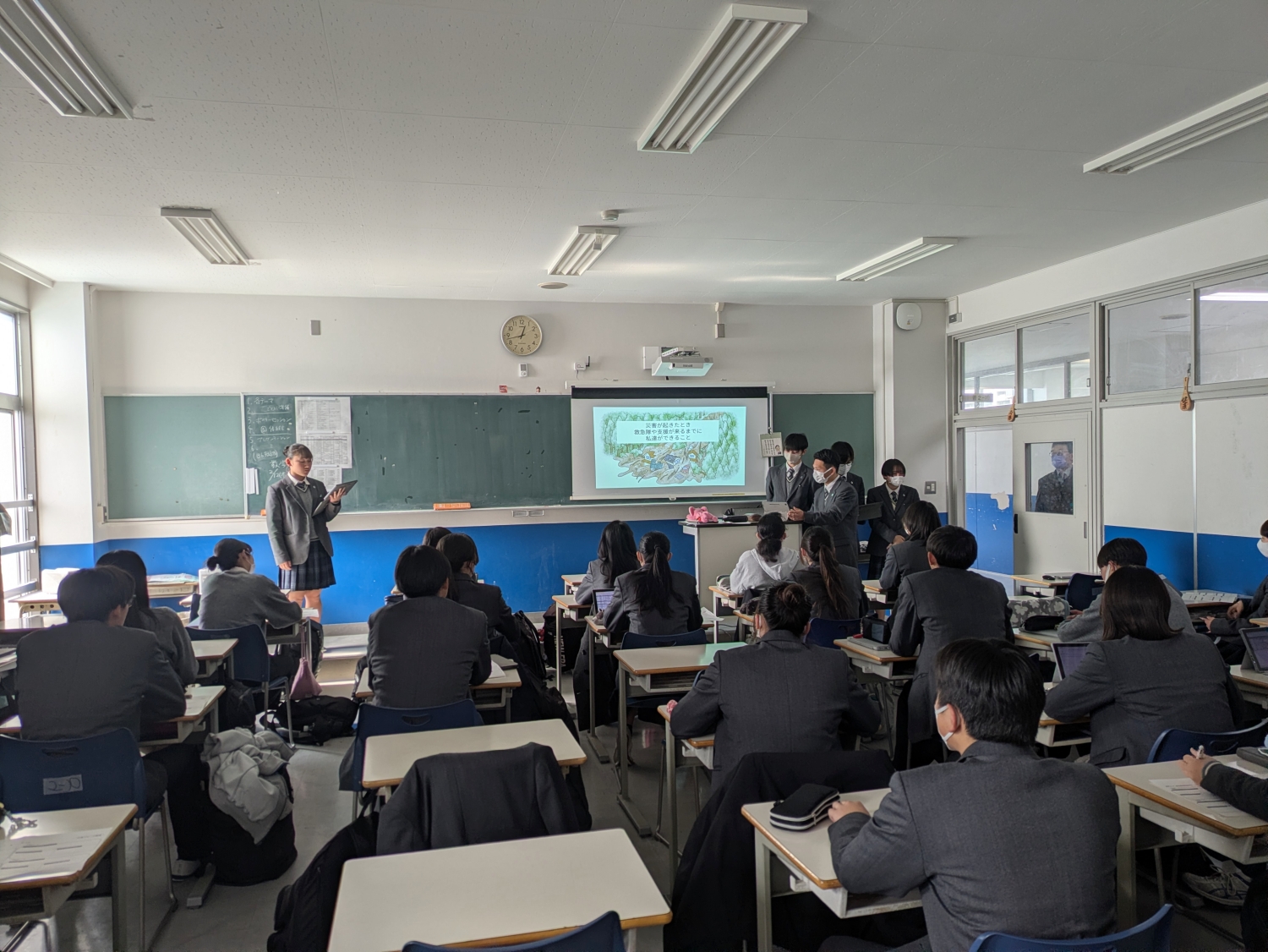 各発表後には参観に来校した医療系大学の教員からの講評とアドバイスを受け、中には専門家ならではの厳しい指摘も入るなど、机上での学習と現実社会とのギャップに気付かされる場面も見受けられ、生徒たちにとっても集大成を発表する場でありながら新たな刺激を受ける一コマとなったようです。